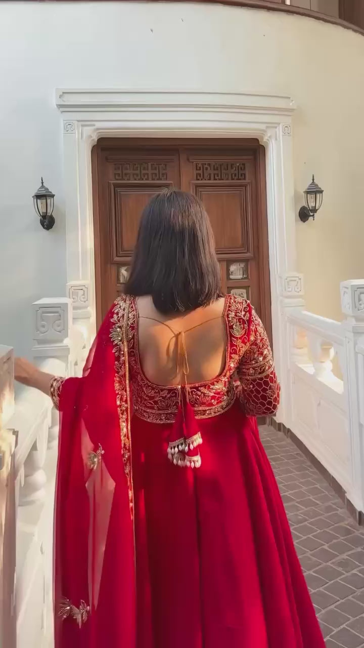 DESIGNER WEAR EXCLUSIVE AND EMBROIDERED GOWN AND PANT PAIR WITH DUPATTA IN GEORGETTE